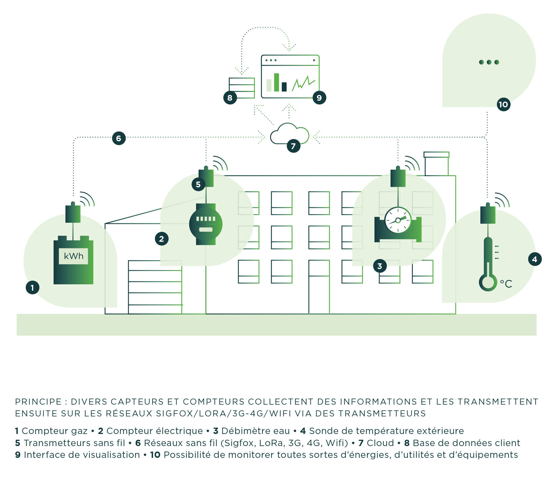 Pour mettre en place un système de mesurage efficace de votre situation, vous devrez mesurer à la fois vos énergies approvisionnées en chaufferie mais également vos besoins thermiques nets. Mettez en relation la rigueur climatique avec vos consommations d’énergies, surveillez votre rendement énergétique et optimisez vos installations ou diminuez vos pertes.